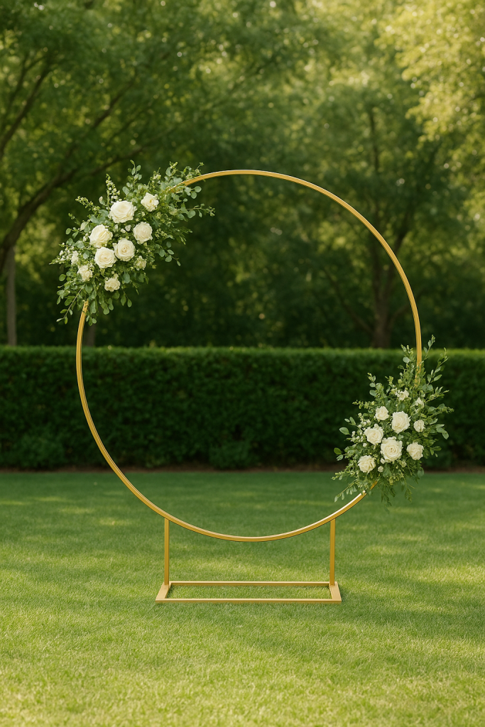 • For rustic or vintage themes, wooden arches painted gold create a warm, natural look.